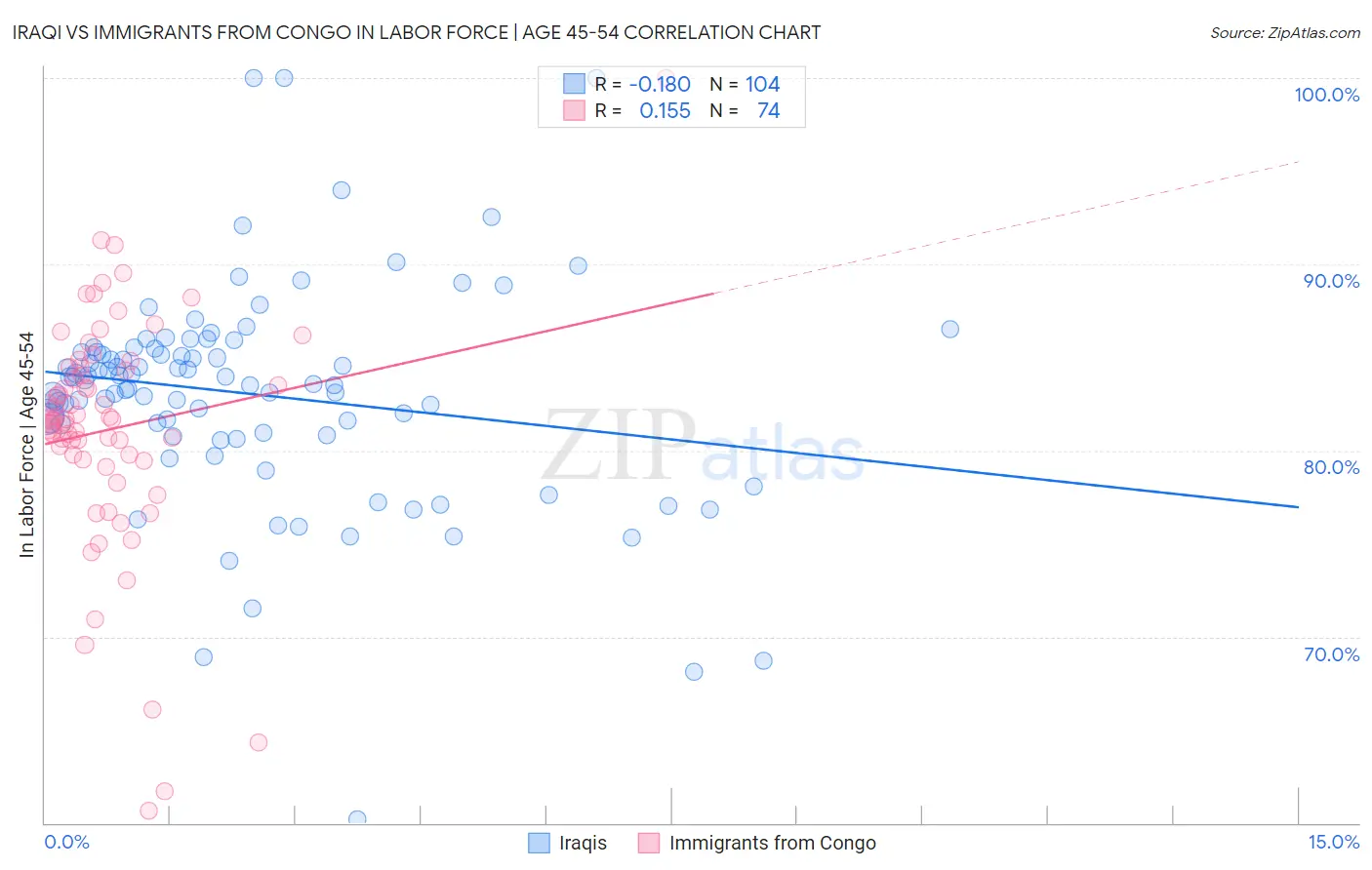 Iraqi vs Immigrants from Congo In Labor Force | Age 45-54 Correlation Chart