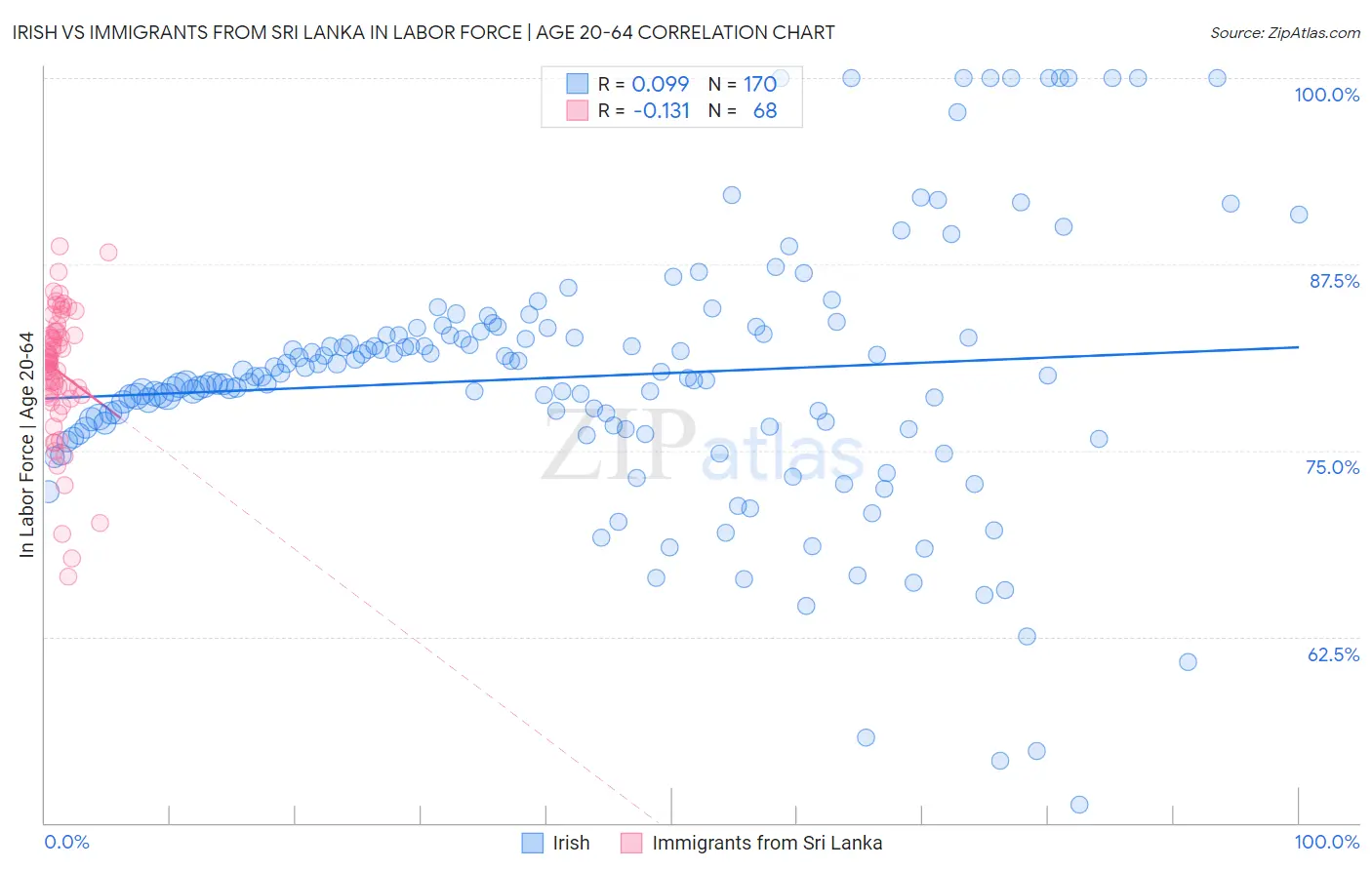Irish vs Immigrants from Sri Lanka In Labor Force | Age 20-64 Correlation Chart