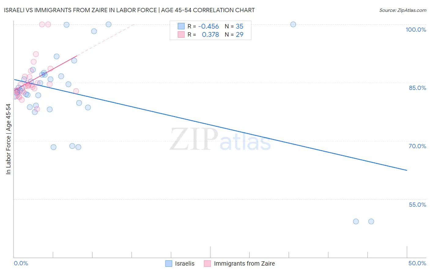 Israeli vs Immigrants from Zaire In Labor Force | Age 45-54 Correlation Chart