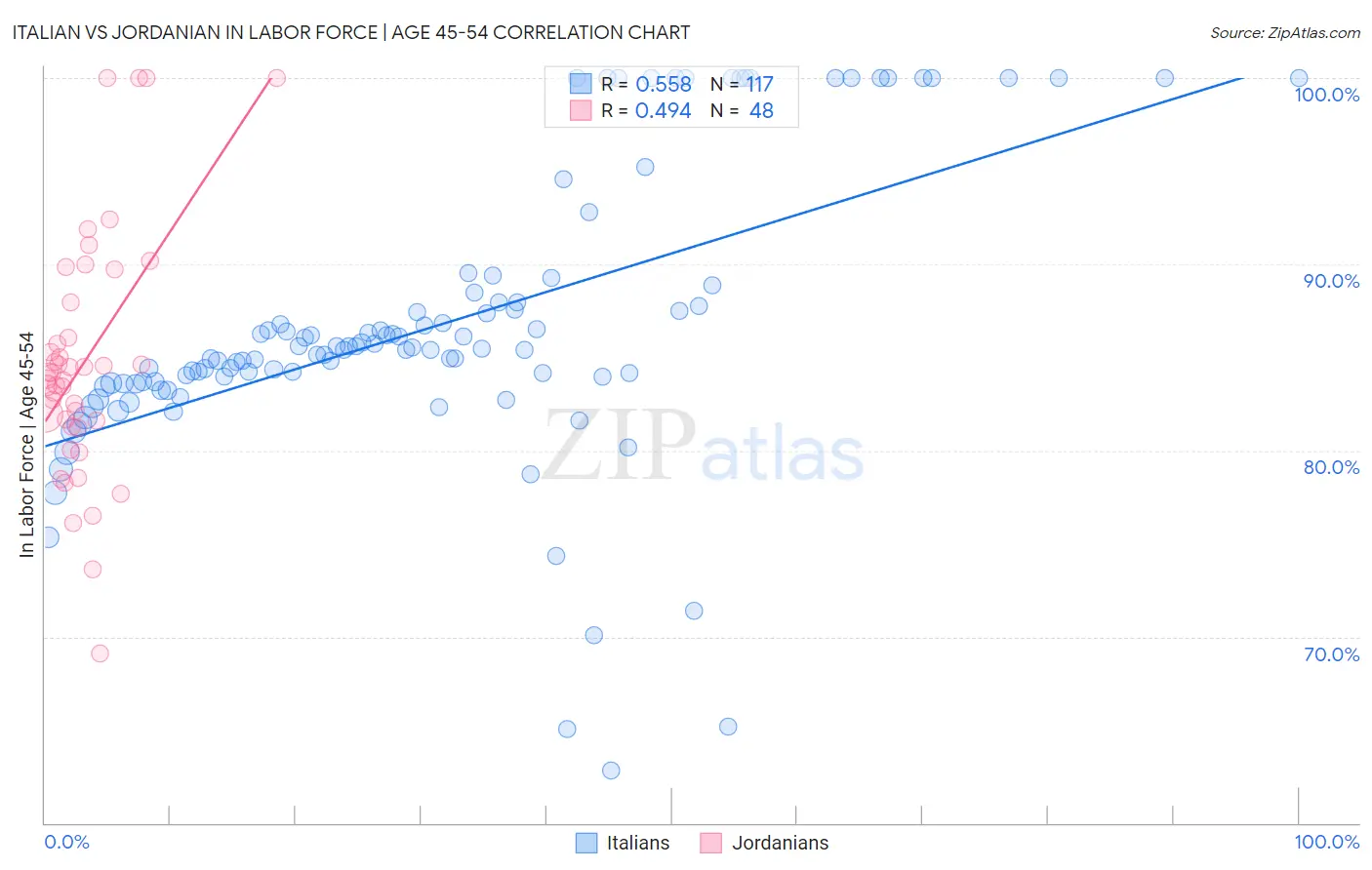 Italian vs Jordanian In Labor Force | Age 45-54 Correlation Chart