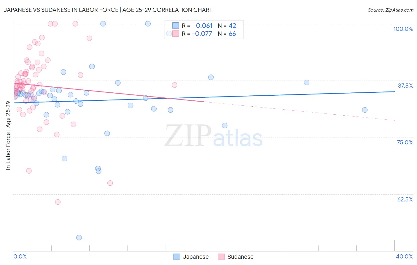 Japanese vs Sudanese In Labor Force | Age 25-29 Correlation Chart