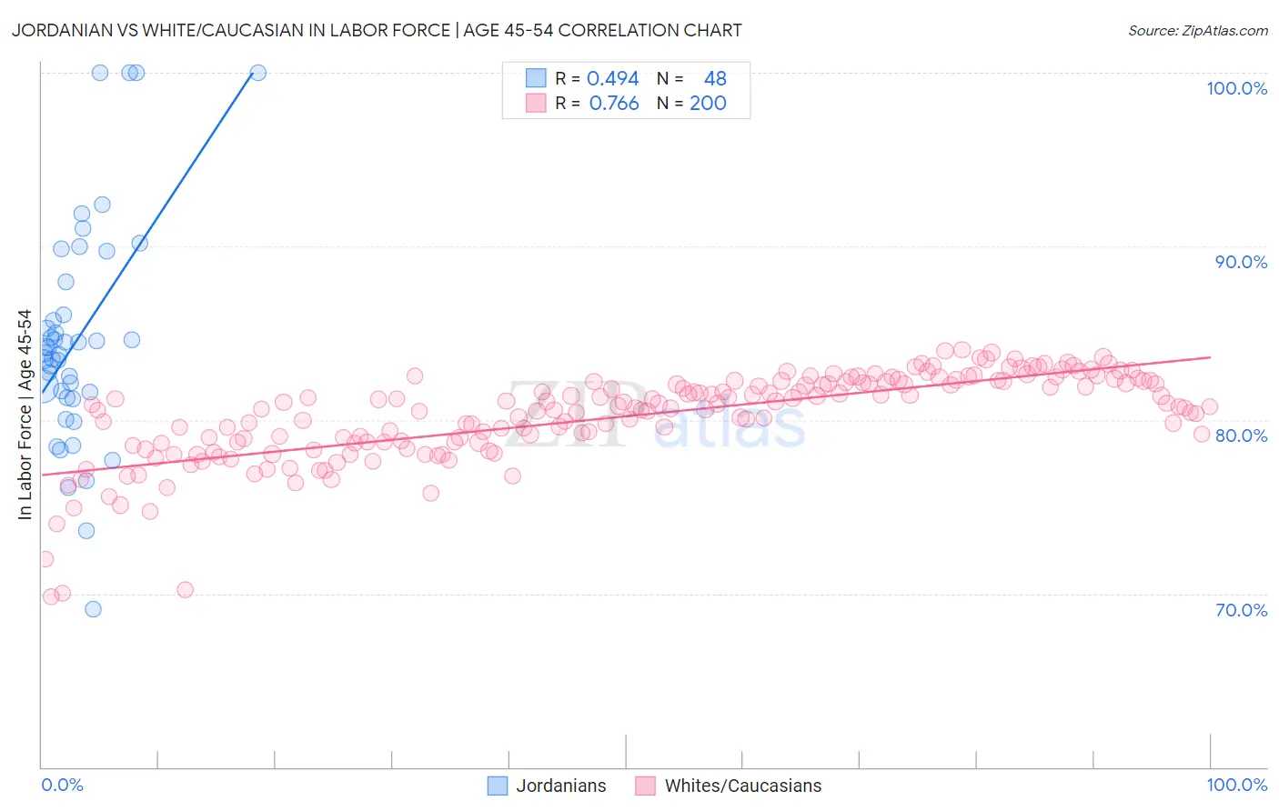 Jordanian vs White/Caucasian In Labor Force | Age 45-54 Correlation Chart