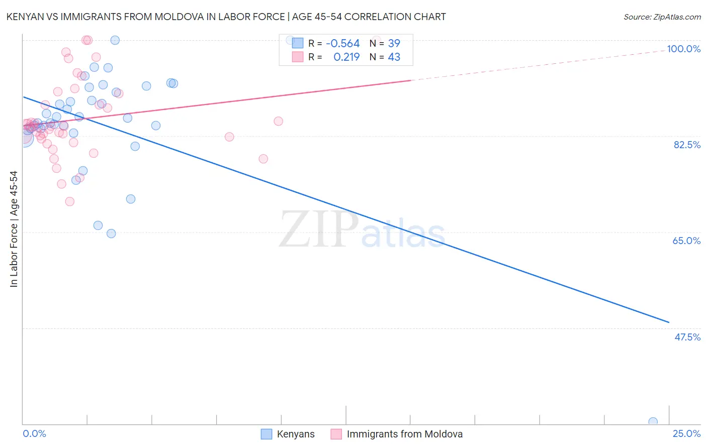 Kenyan vs Immigrants from Moldova In Labor Force | Age 45-54 Correlation Chart