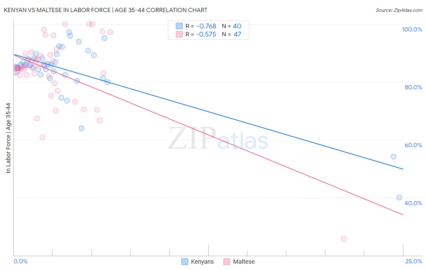 Kenyan vs Maltese In Labor Force | Age 35-44 Correlation Chart