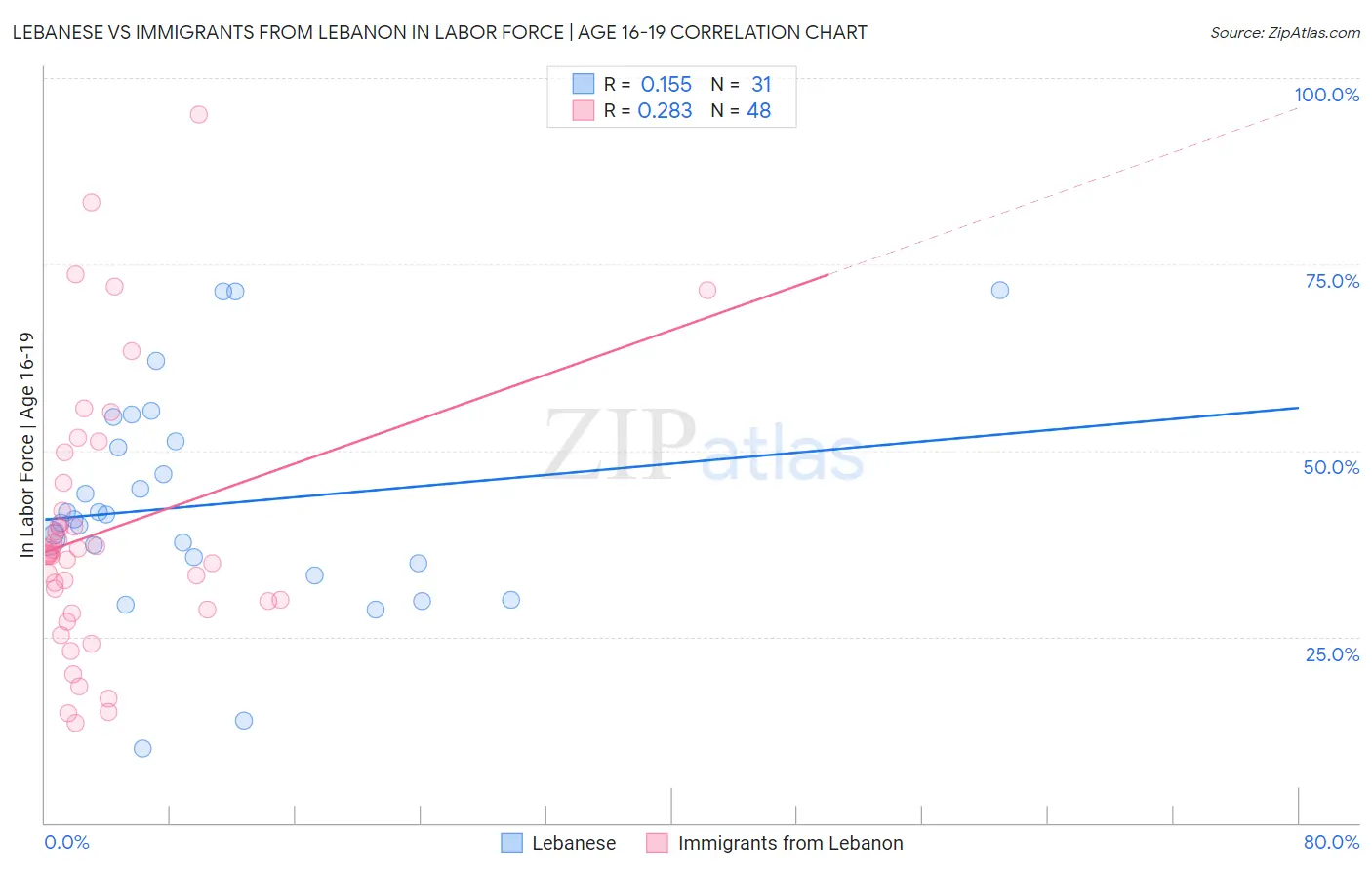 Lebanese vs Immigrants from Lebanon In Labor Force | Age 16-19 Correlation Chart