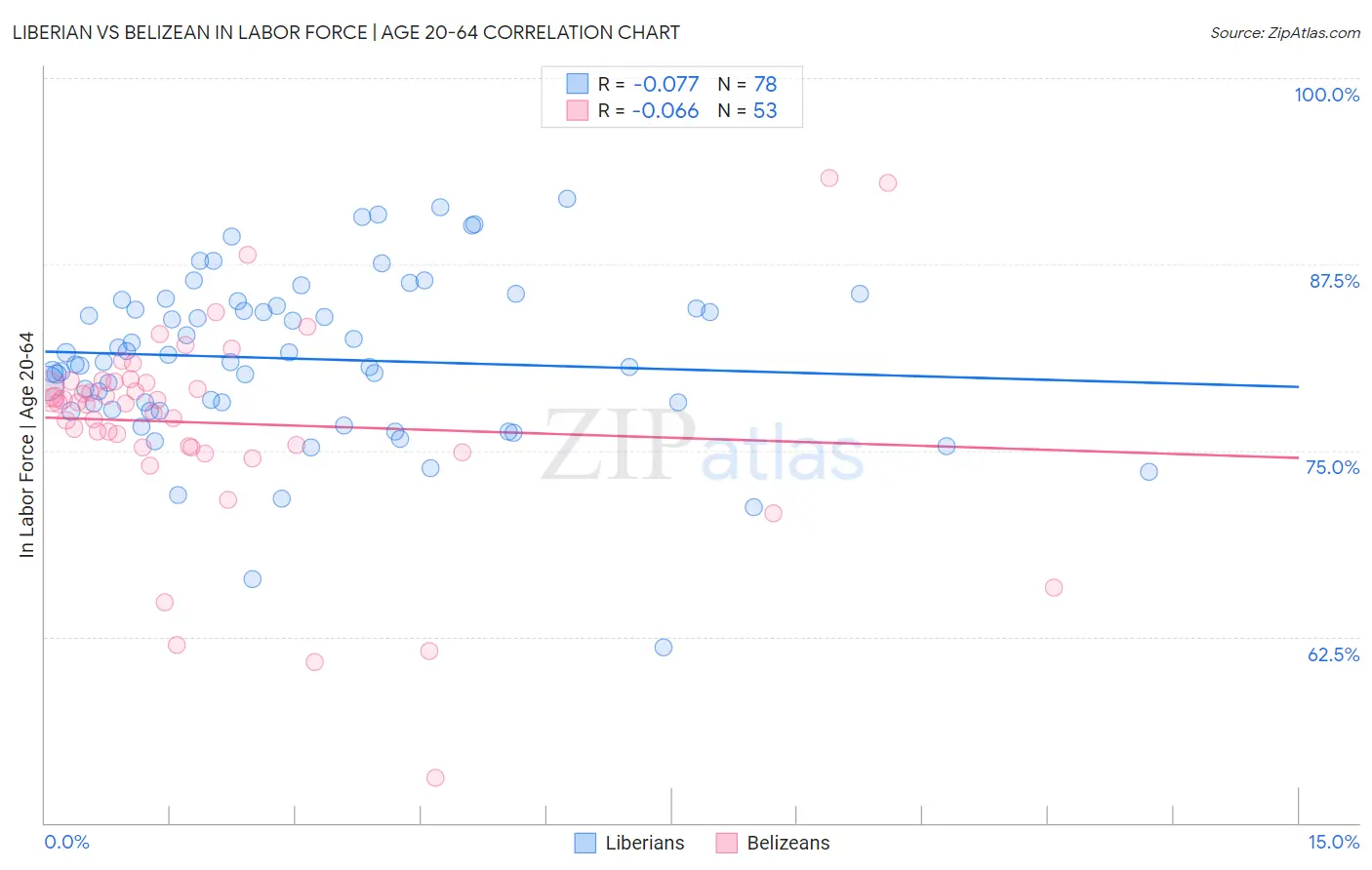 Liberian vs Belizean In Labor Force | Age 20-64 Correlation Chart