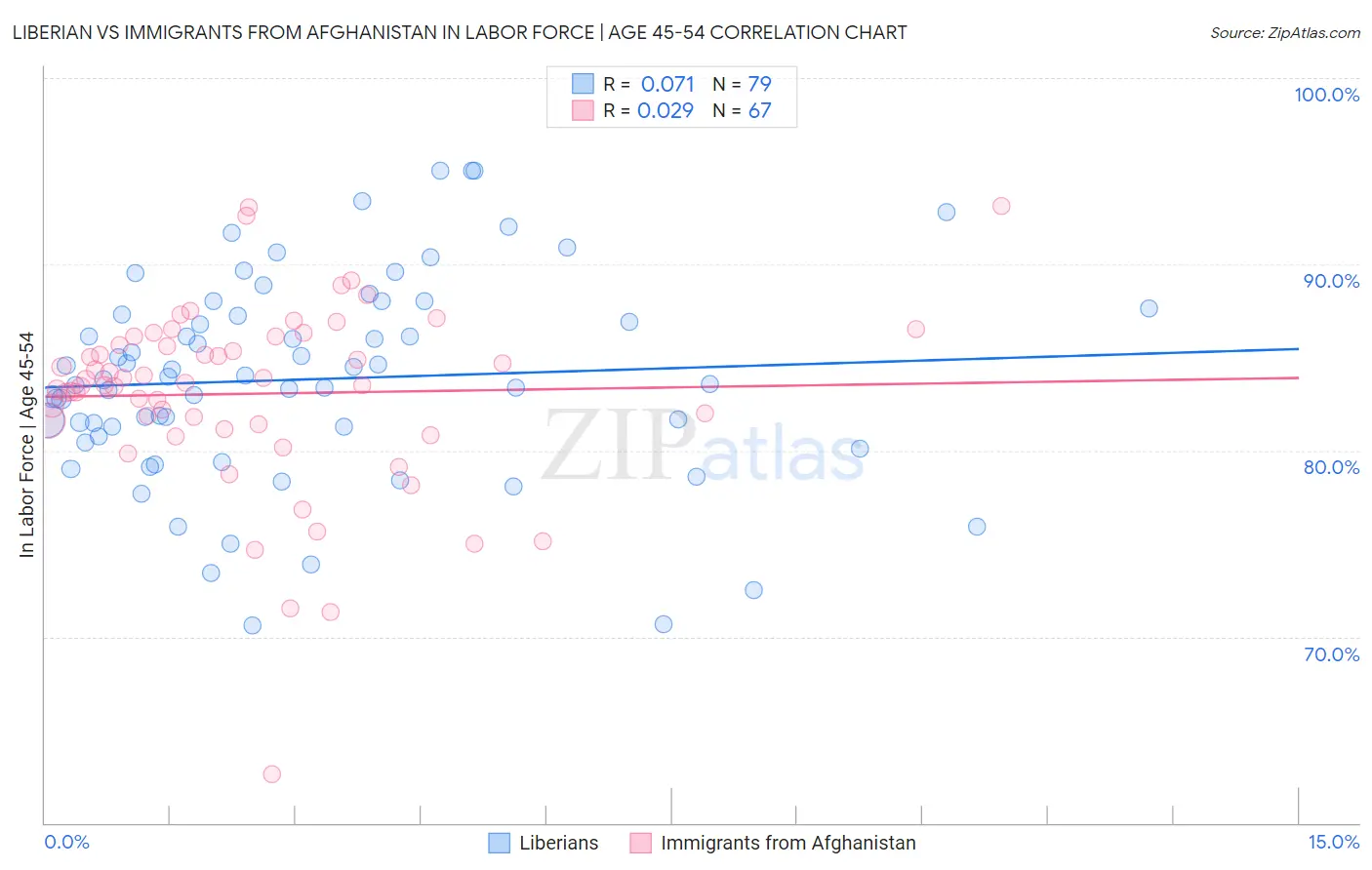 Liberian vs Immigrants from Afghanistan In Labor Force | Age 45-54 Correlation Chart