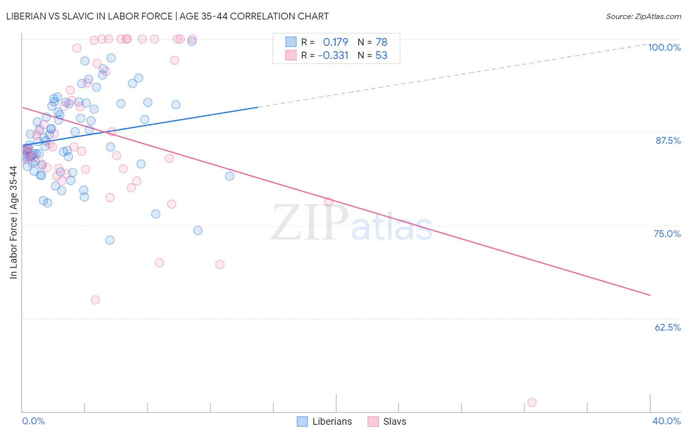 Liberian vs Slavic In Labor Force | Age 35-44 Correlation Chart
