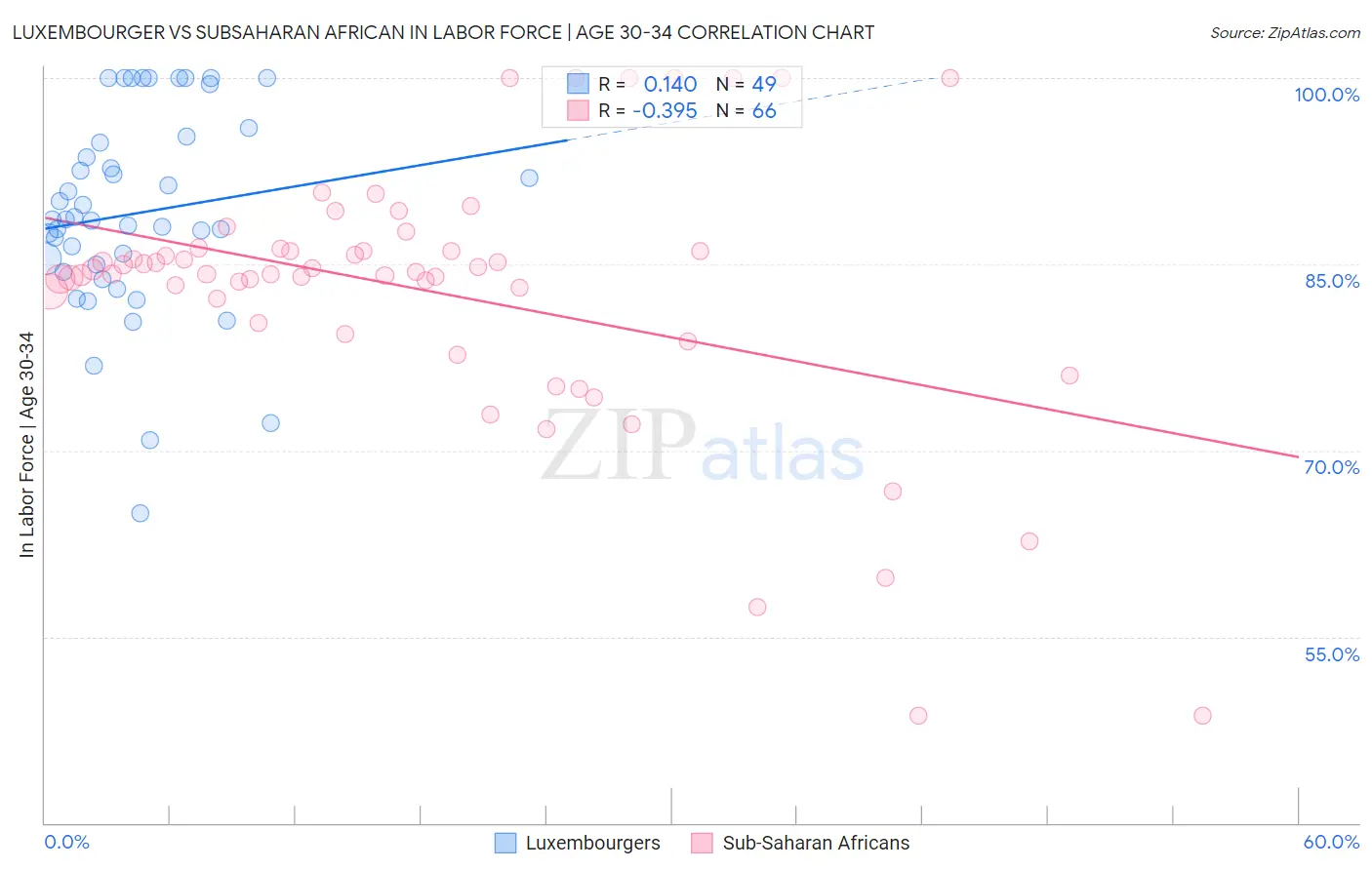 Luxembourger vs Subsaharan African In Labor Force | Age 30-34 Correlation Chart