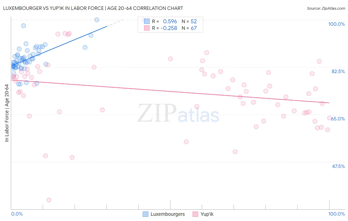 Luxembourger vs Yup'ik In Labor Force | Age 20-64 Correlation Chart