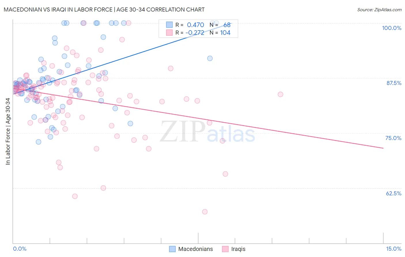 Macedonian vs Iraqi In Labor Force | Age 30-34 Correlation Chart