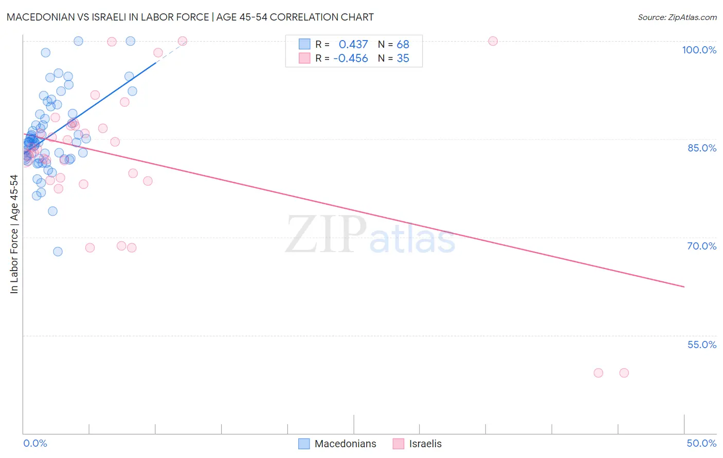 Macedonian vs Israeli In Labor Force | Age 45-54 Correlation Chart