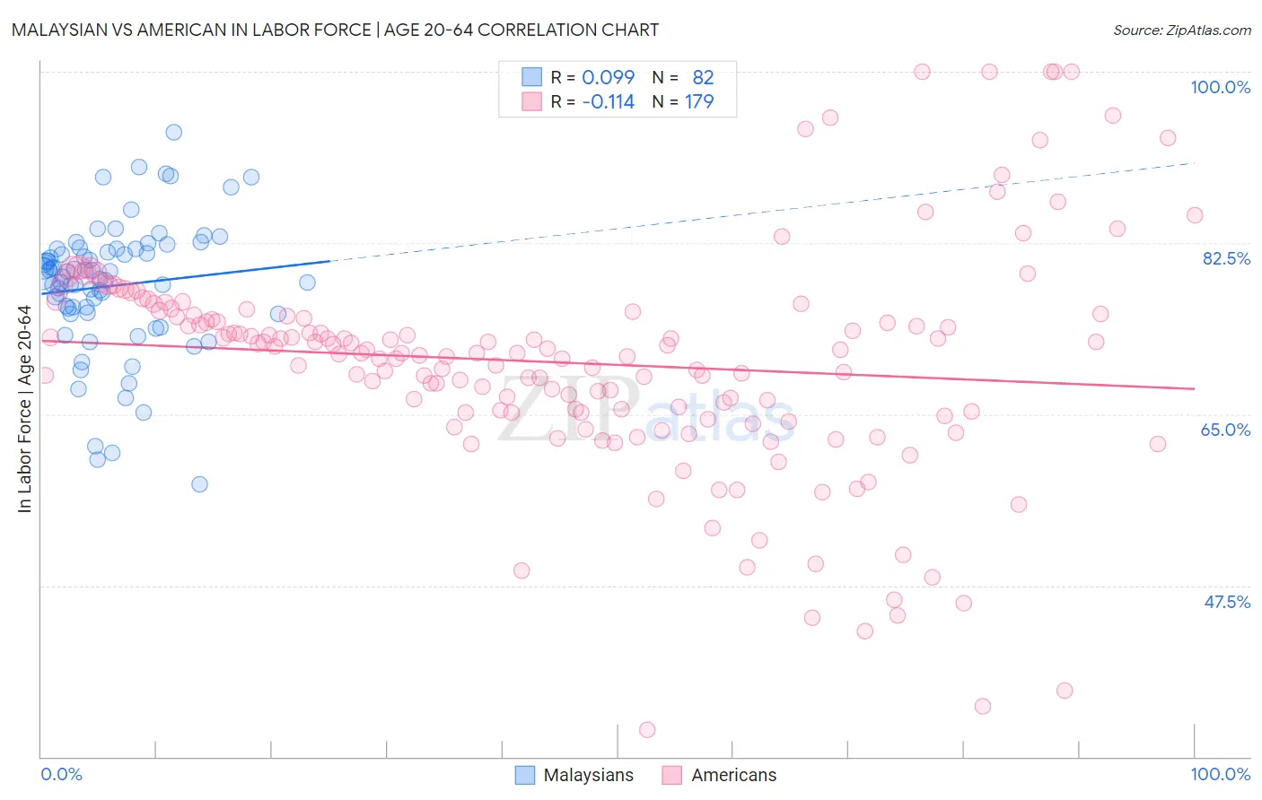 Malaysian vs American In Labor Force | Age 20-64 Correlation Chart