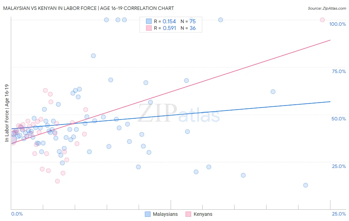 Malaysian vs Kenyan In Labor Force | Age 16-19 Correlation Chart