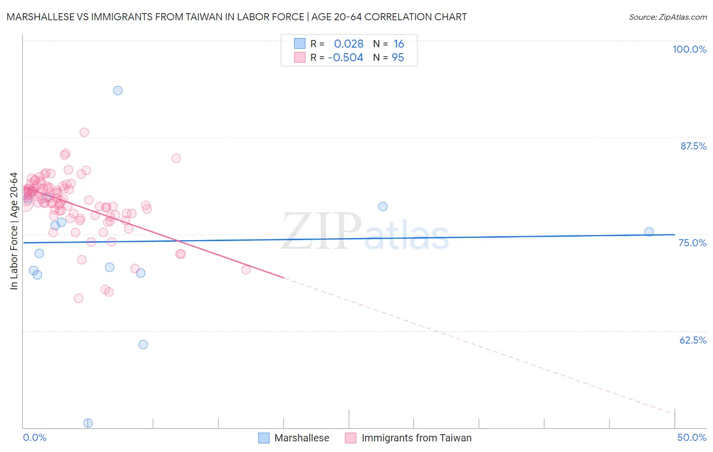 Marshallese vs Immigrants from Taiwan In Labor Force | Age 20-64 Correlation Chart