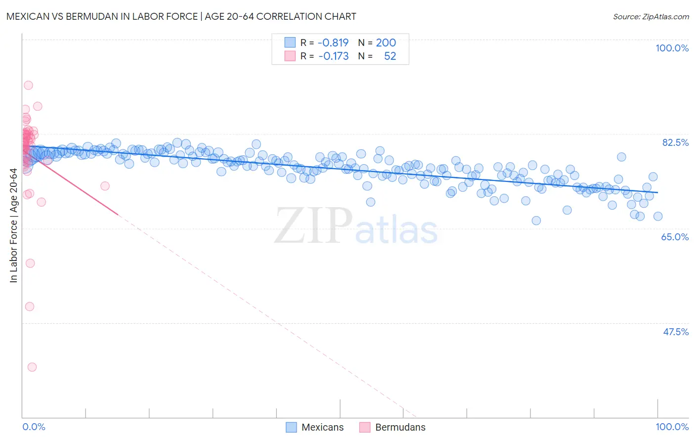 Mexican vs Bermudan In Labor Force | Age 20-64 Correlation Chart