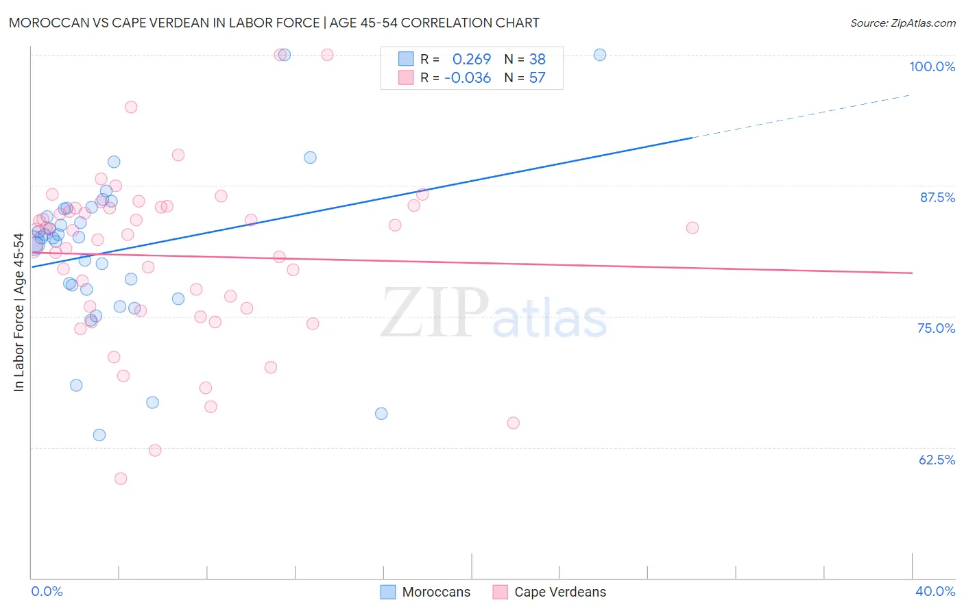 Moroccan vs Cape Verdean In Labor Force | Age 45-54 Correlation Chart