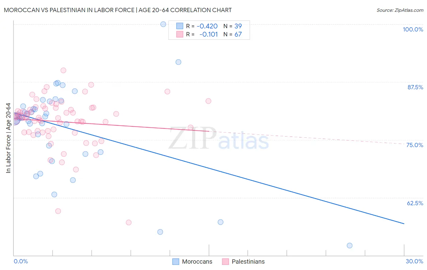 Moroccan vs Palestinian In Labor Force | Age 20-64 Correlation Chart