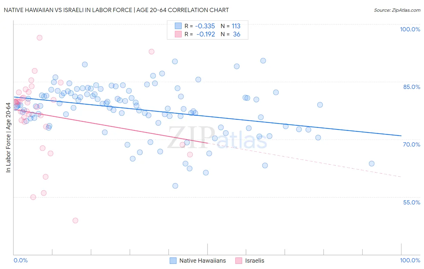 Native Hawaiian vs Israeli In Labor Force | Age 20-64 Correlation Chart