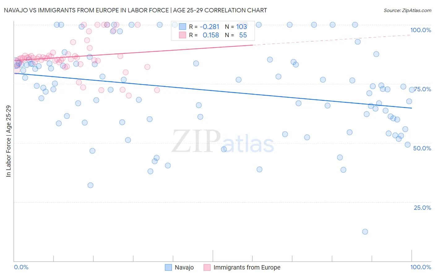 Navajo vs Immigrants from Europe In Labor Force | Age 25-29 Correlation Chart