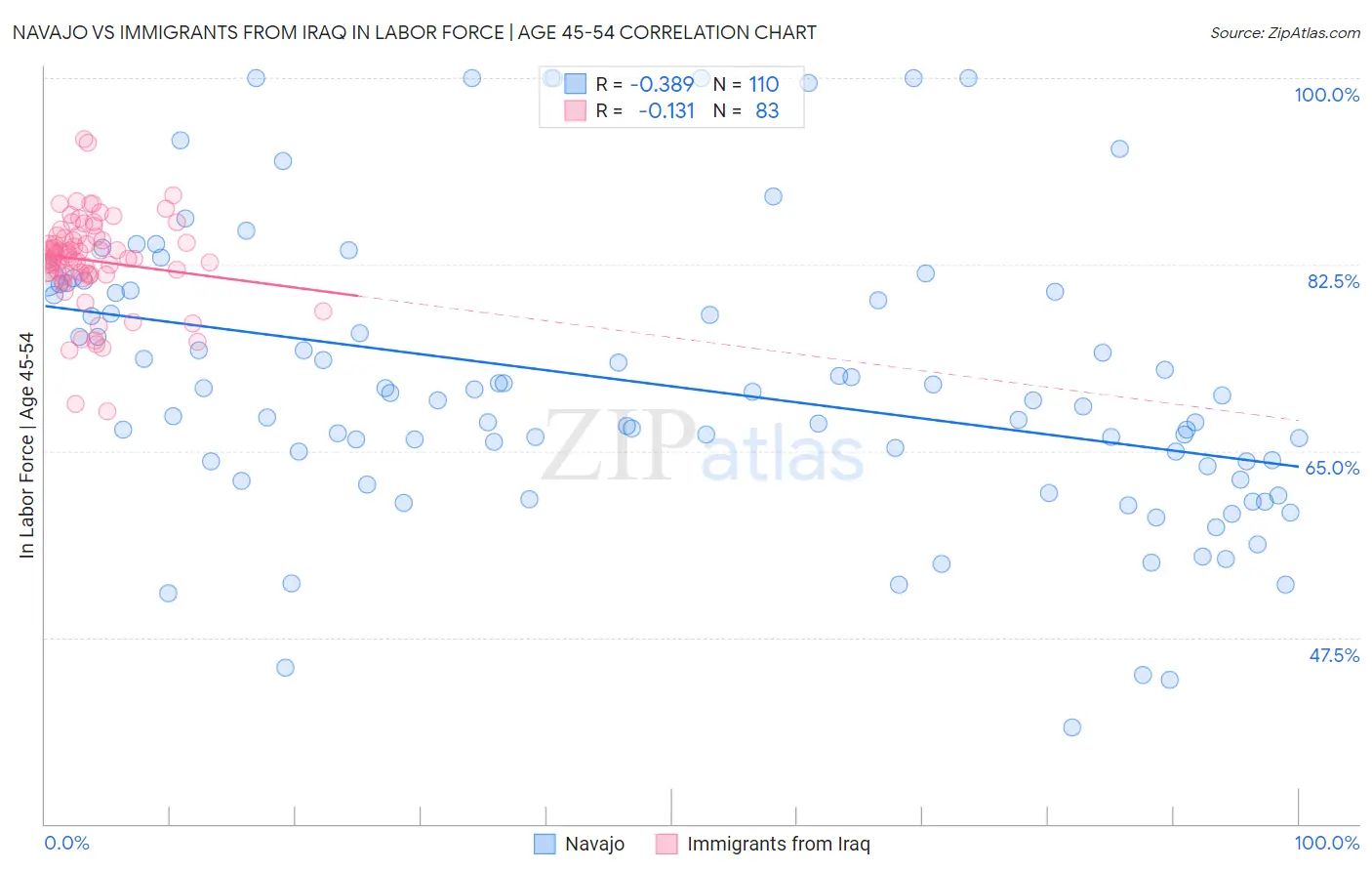 Navajo vs Immigrants from Iraq In Labor Force | Age 45-54 Correlation Chart