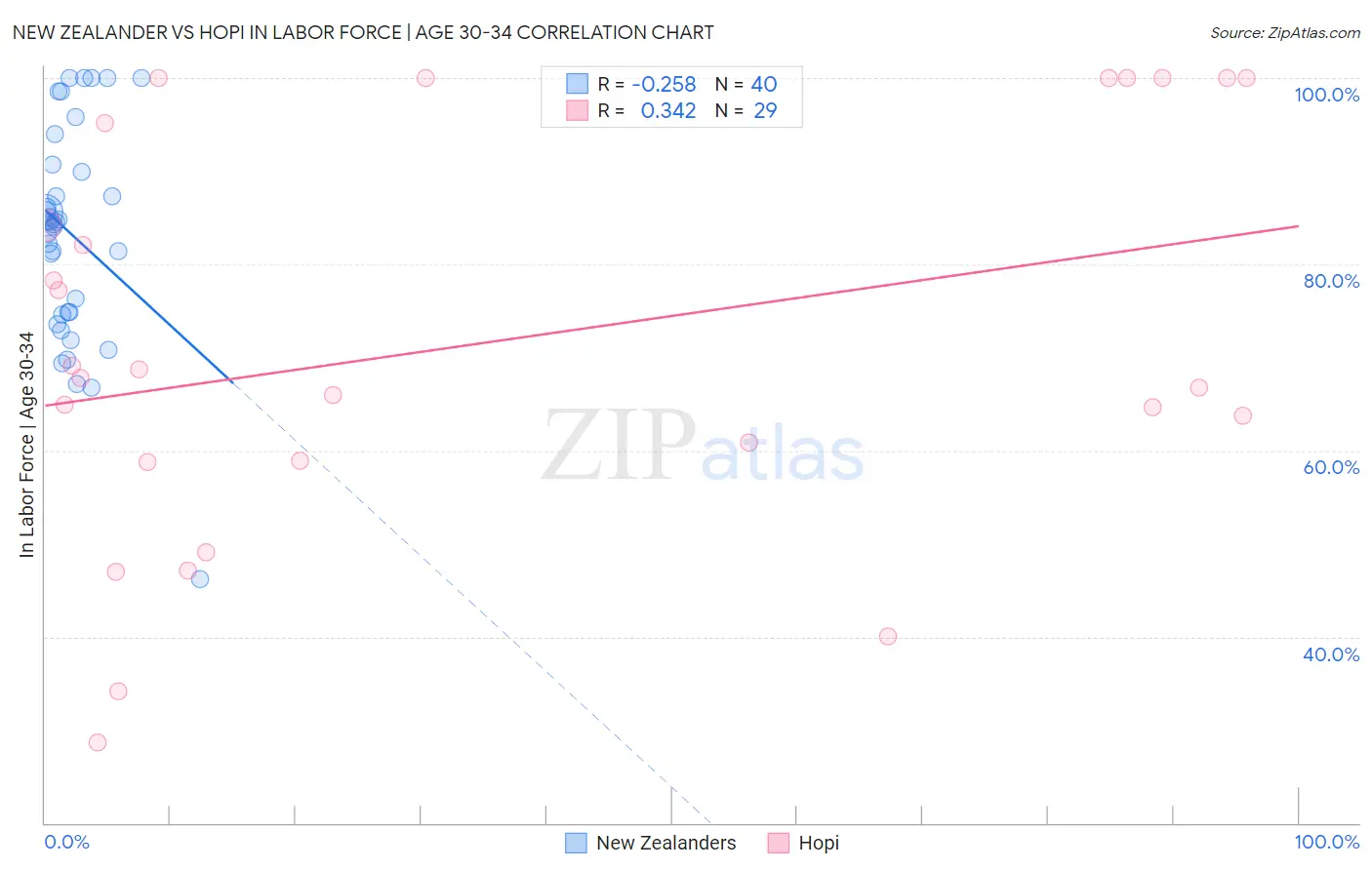 New Zealander vs Hopi In Labor Force | Age 30-34 Correlation Chart