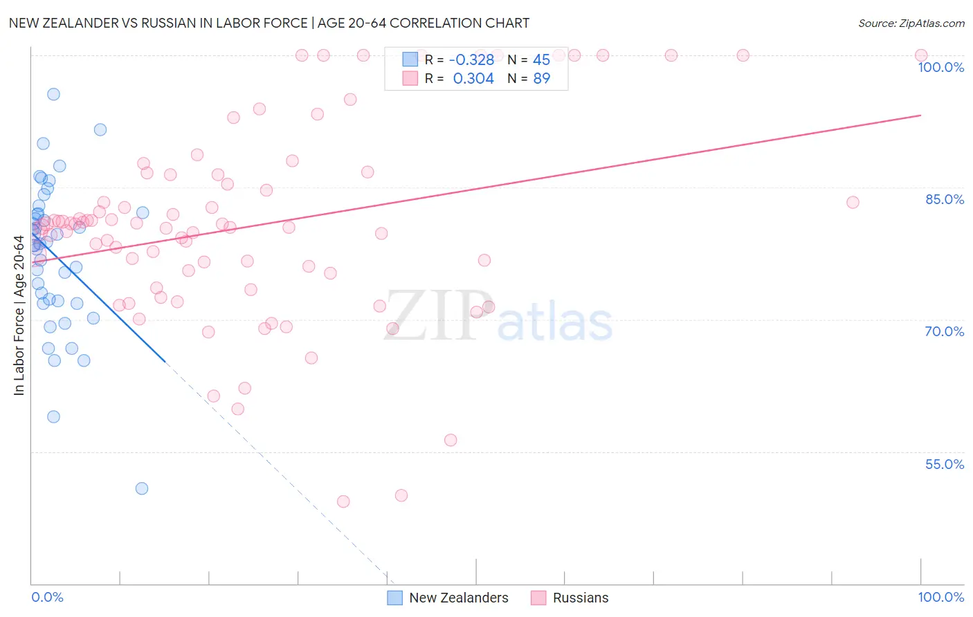 New Zealander vs Russian In Labor Force | Age 20-64 Correlation Chart