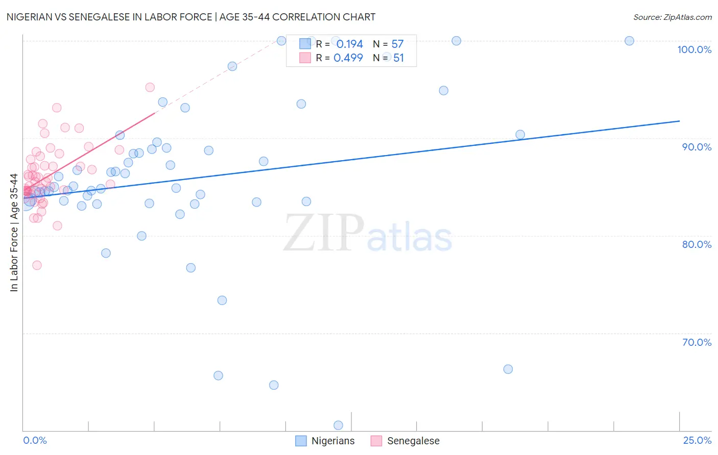 Nigerian vs Senegalese In Labor Force | Age 35-44 Correlation Chart