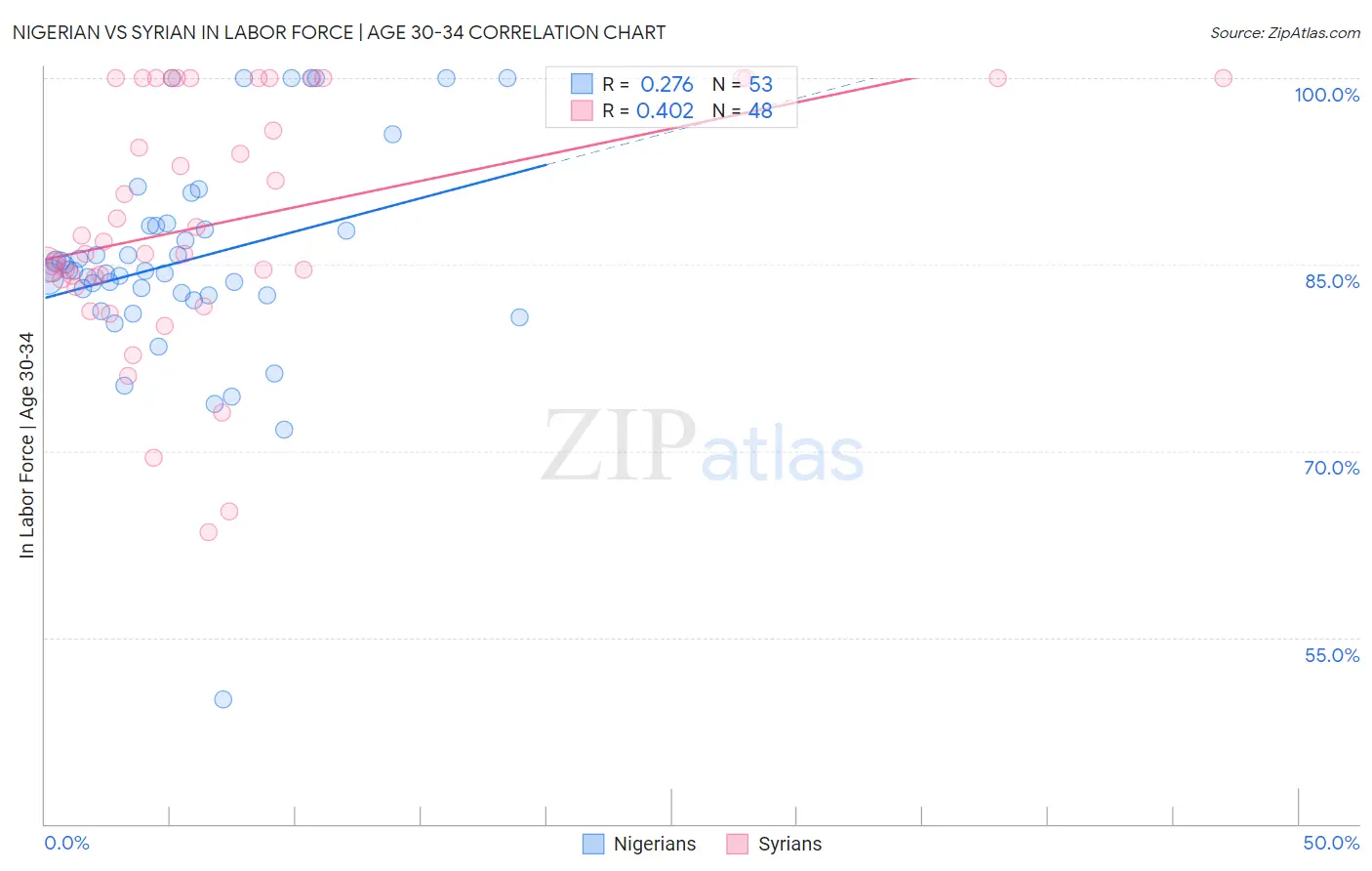 Nigerian vs Syrian In Labor Force | Age 30-34 Correlation Chart