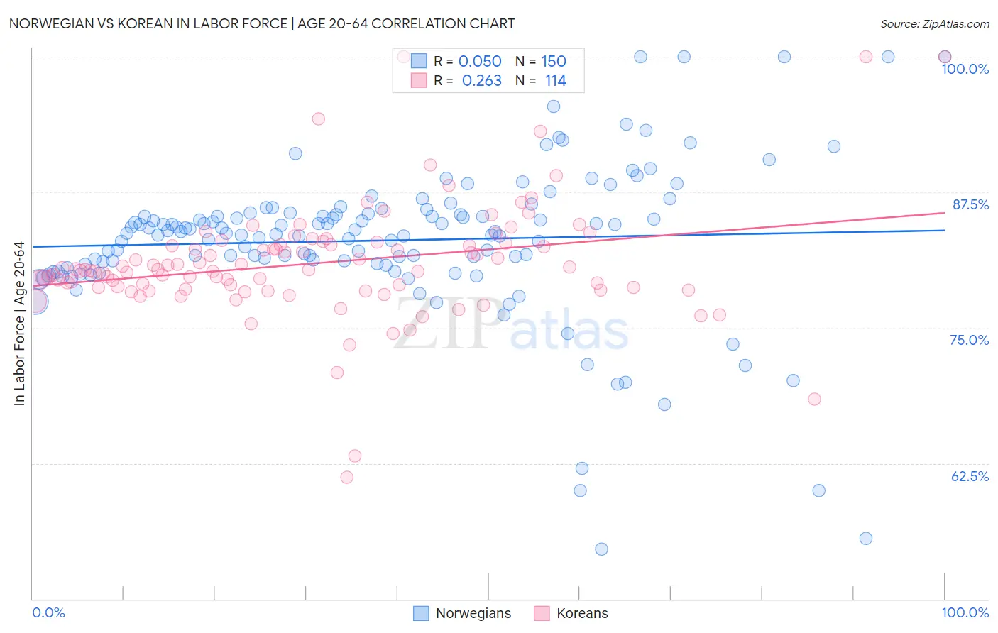 Norwegian vs Korean In Labor Force | Age 20-64 Correlation Chart