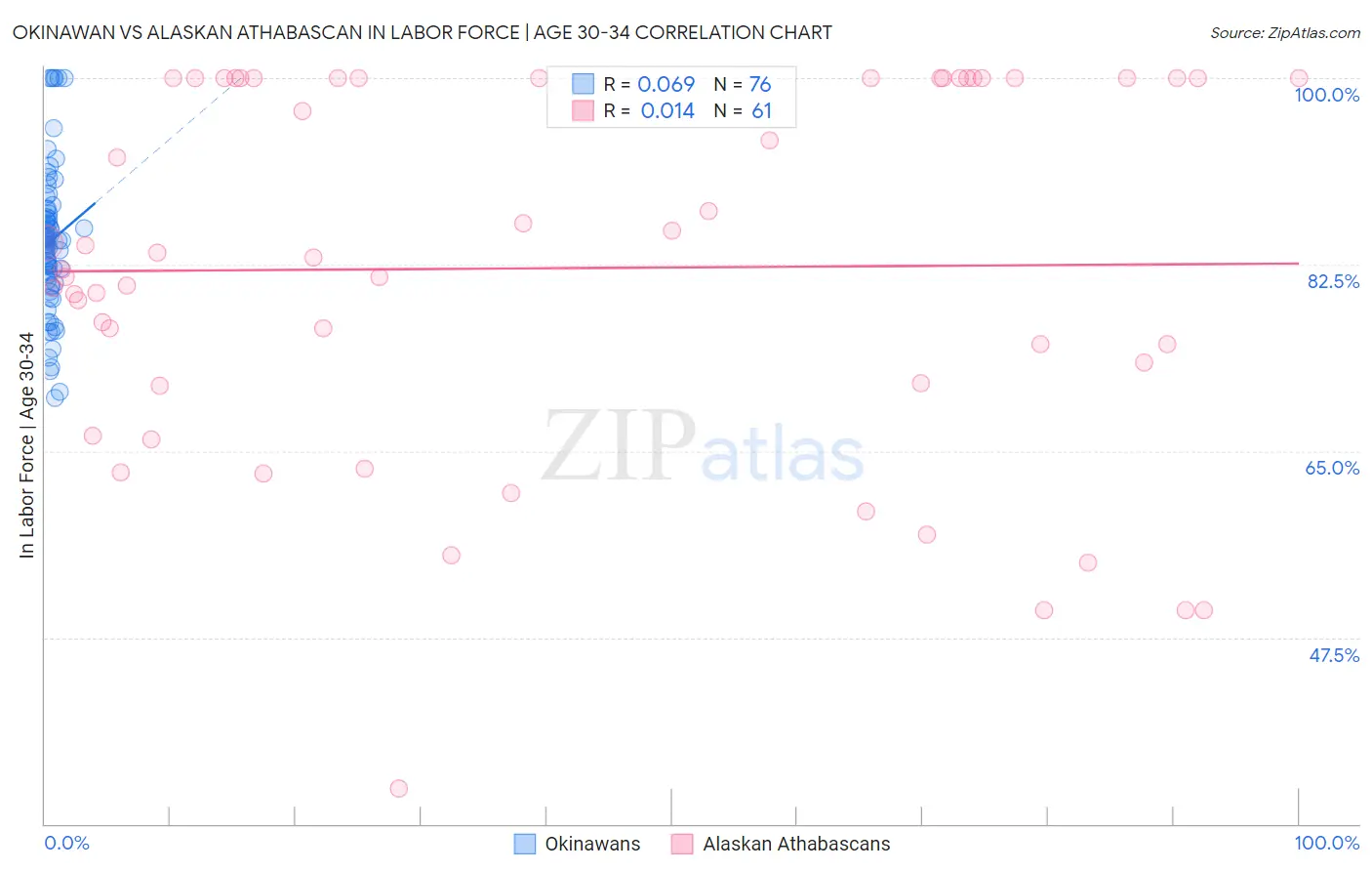 Okinawan vs Alaskan Athabascan In Labor Force | Age 30-34 Correlation Chart