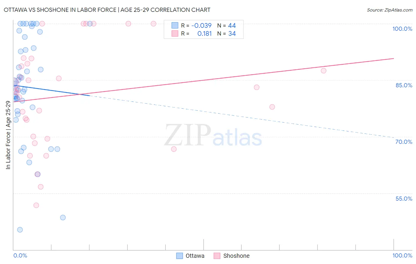 Ottawa vs Shoshone In Labor Force | Age 25-29 Correlation Chart