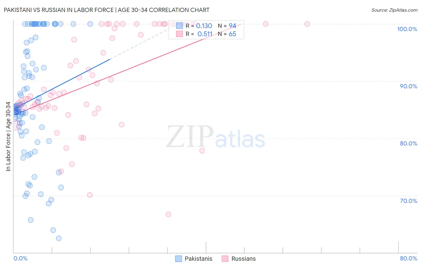 Pakistani vs Russian In Labor Force | Age 30-34 Correlation Chart