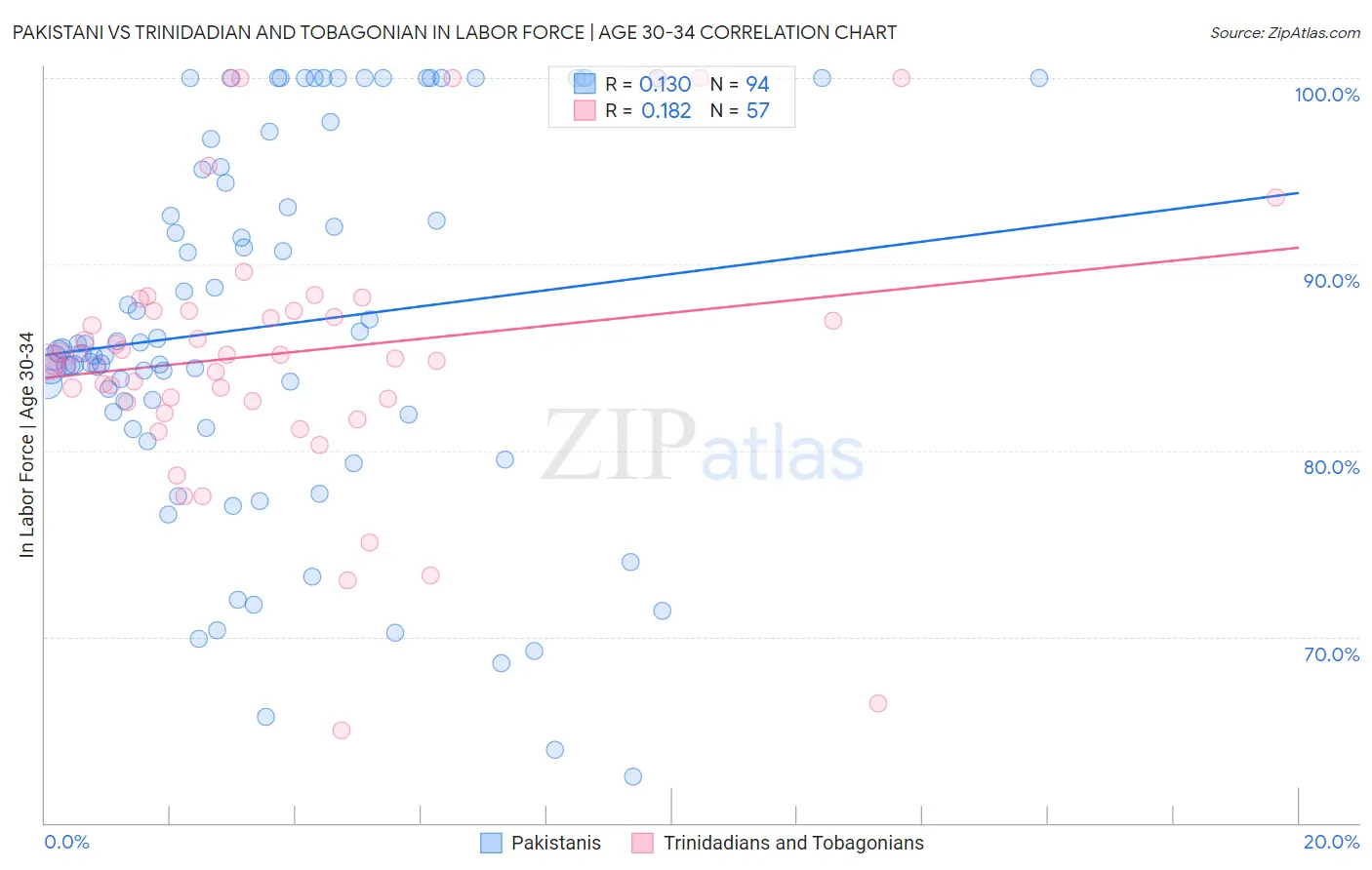 Pakistani vs Trinidadian and Tobagonian In Labor Force | Age 30-34 Correlation Chart