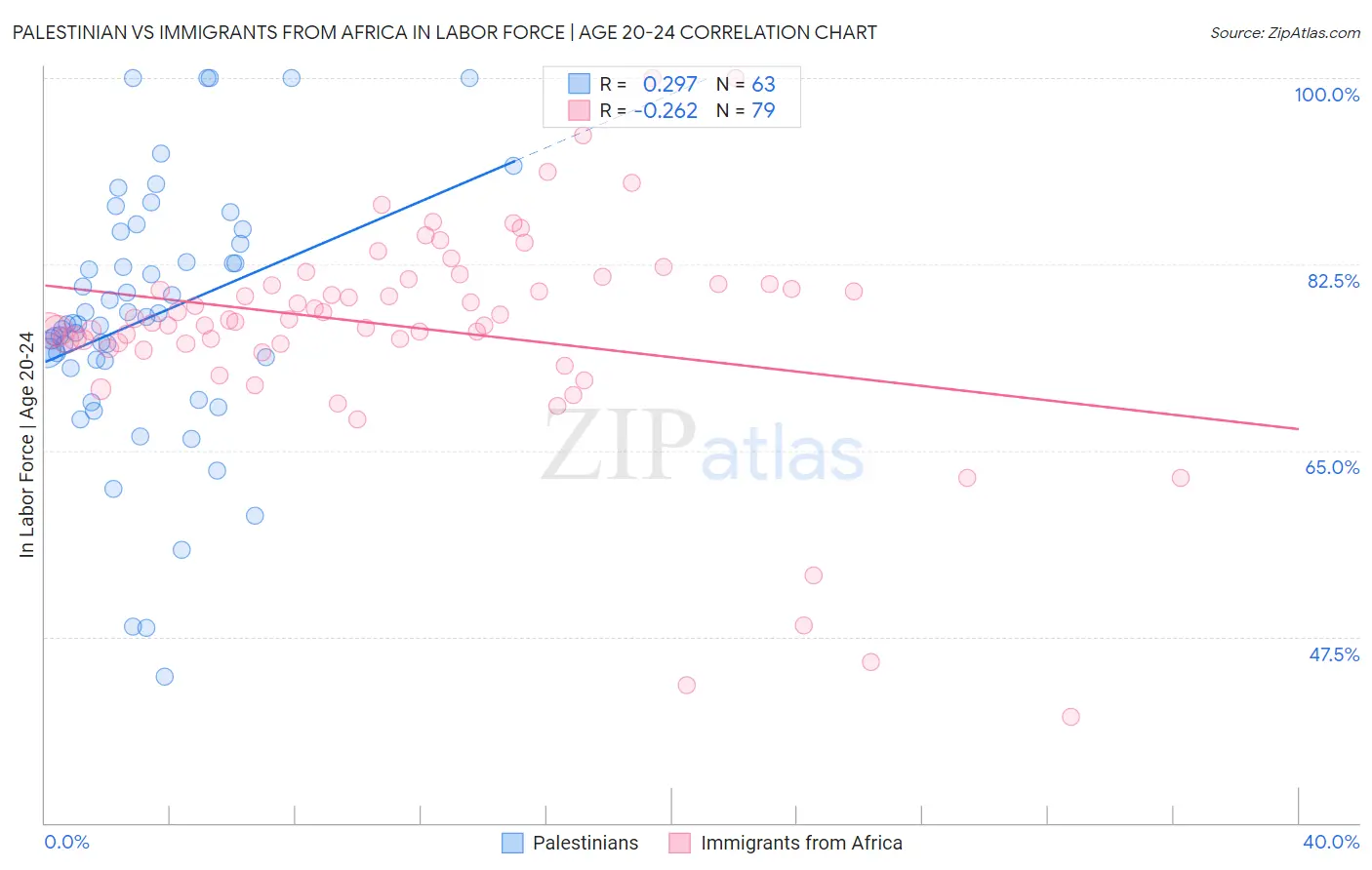 Palestinian vs Immigrants from Africa In Labor Force | Age 20-24 Correlation Chart