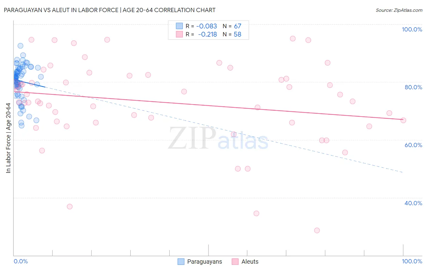 Paraguayan vs Aleut In Labor Force | Age 20-64 Correlation Chart