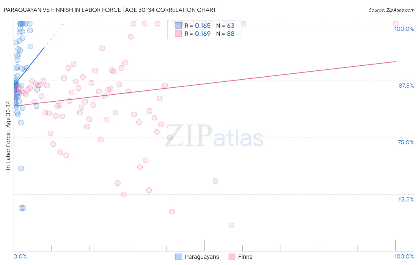 Paraguayan vs Finnish In Labor Force | Age 30-34 Correlation Chart