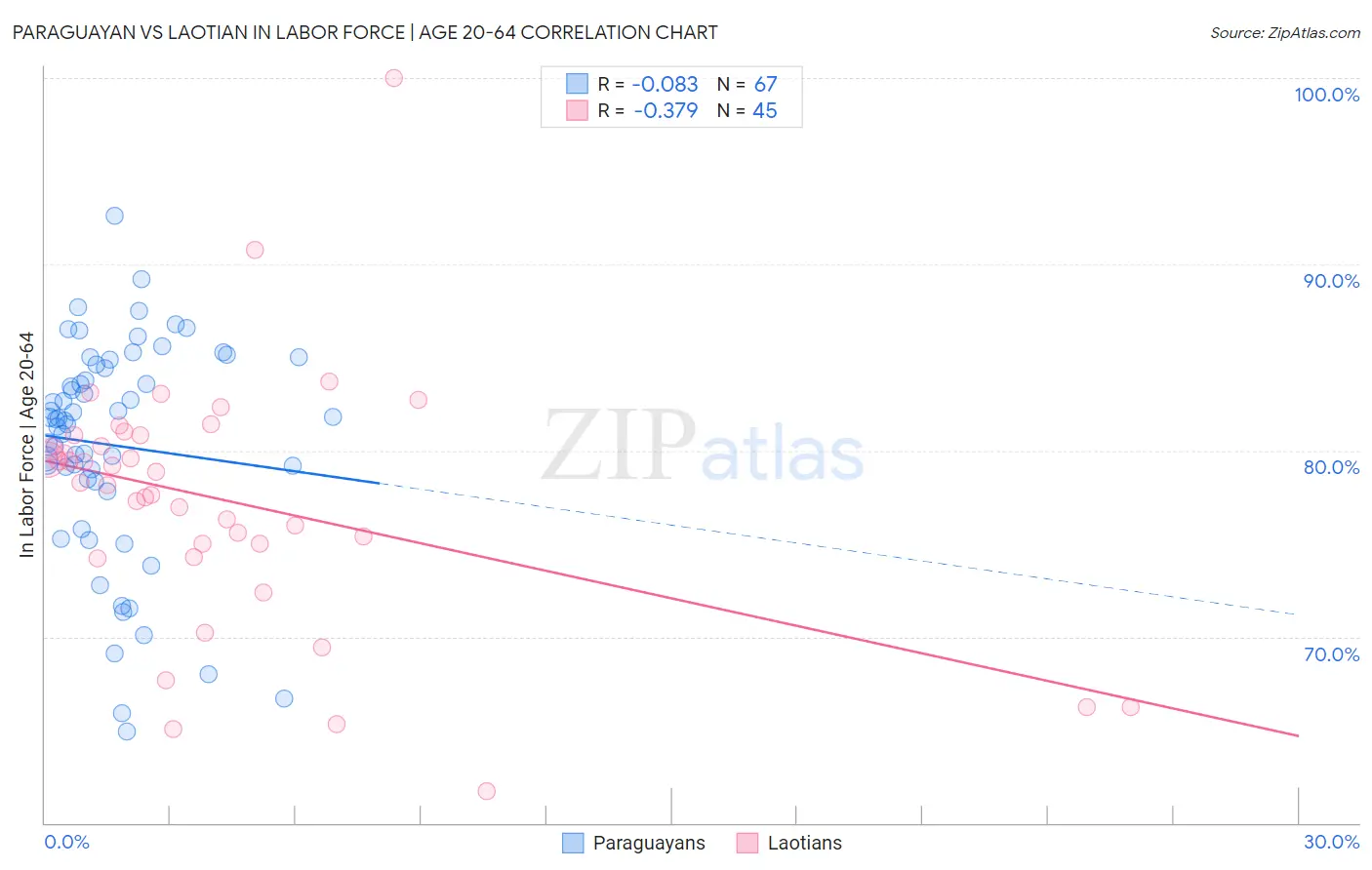 Paraguayan vs Laotian In Labor Force | Age 20-64 Correlation Chart