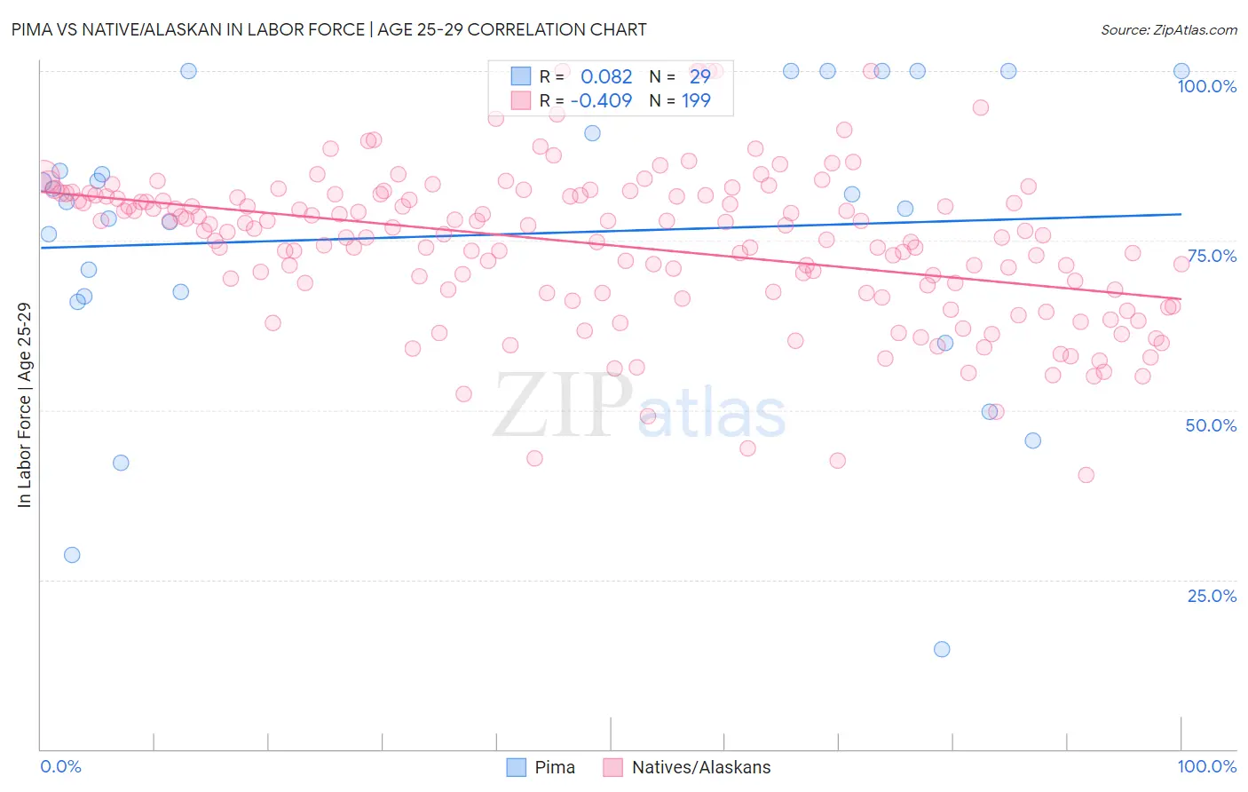 Demographics Similar to Pima and Natives/Alaskans by In Labor Force | Age 25-29