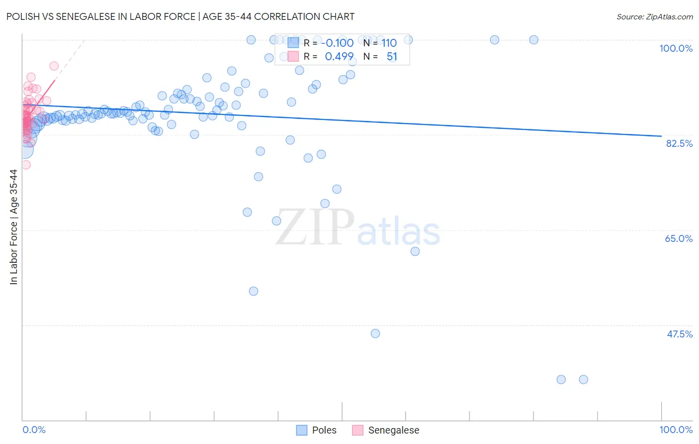 Polish vs Senegalese In Labor Force | Age 35-44 Correlation Chart