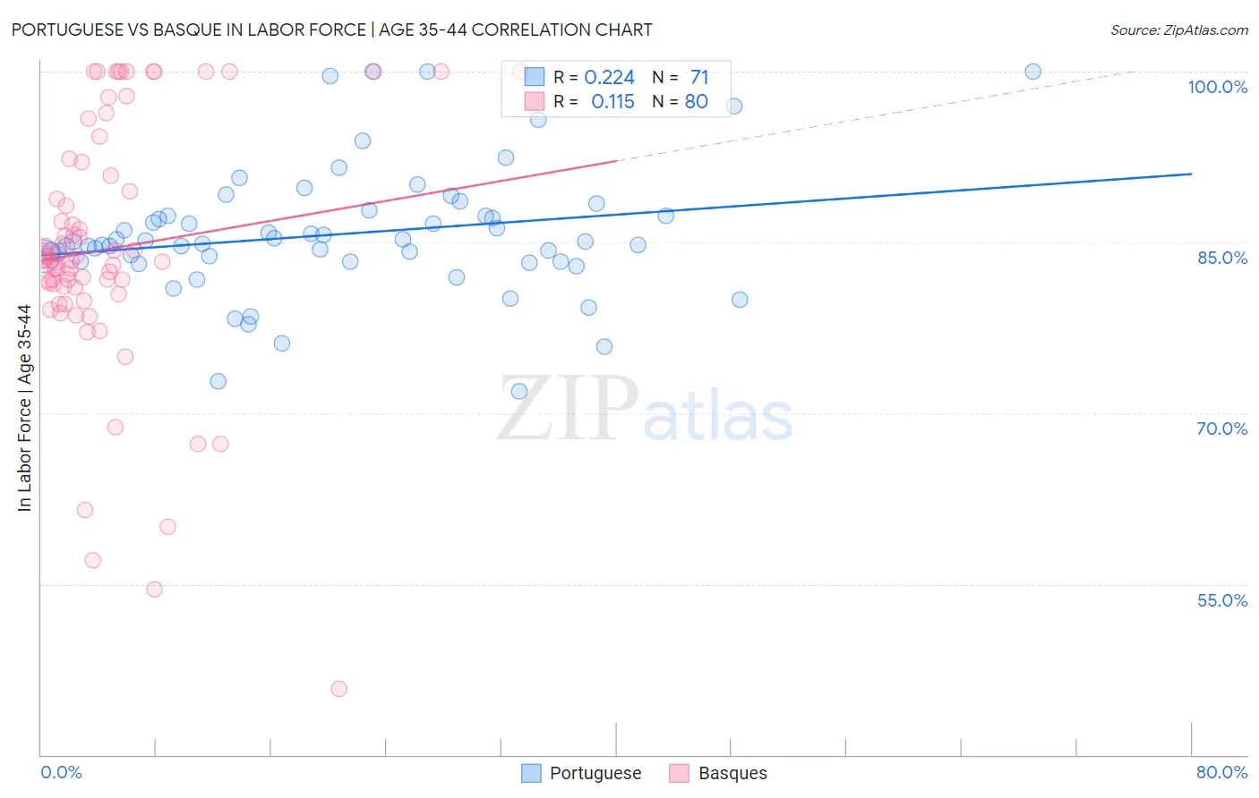Portuguese vs Basque In Labor Force | Age 35-44 Correlation Chart