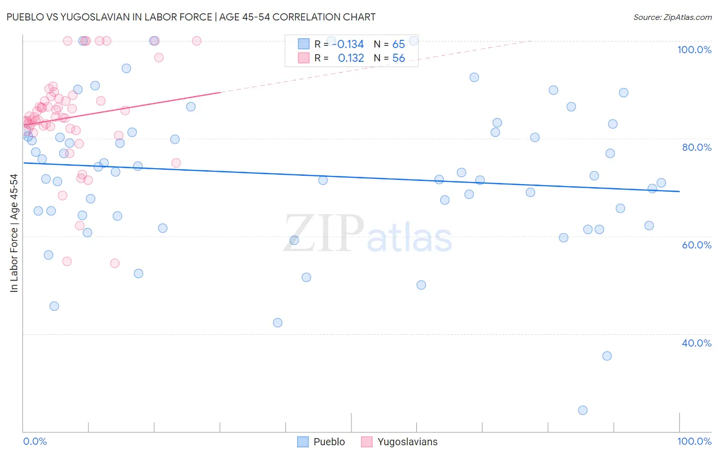 Pueblo vs Yugoslavian In Labor Force | Age 45-54 Correlation Chart