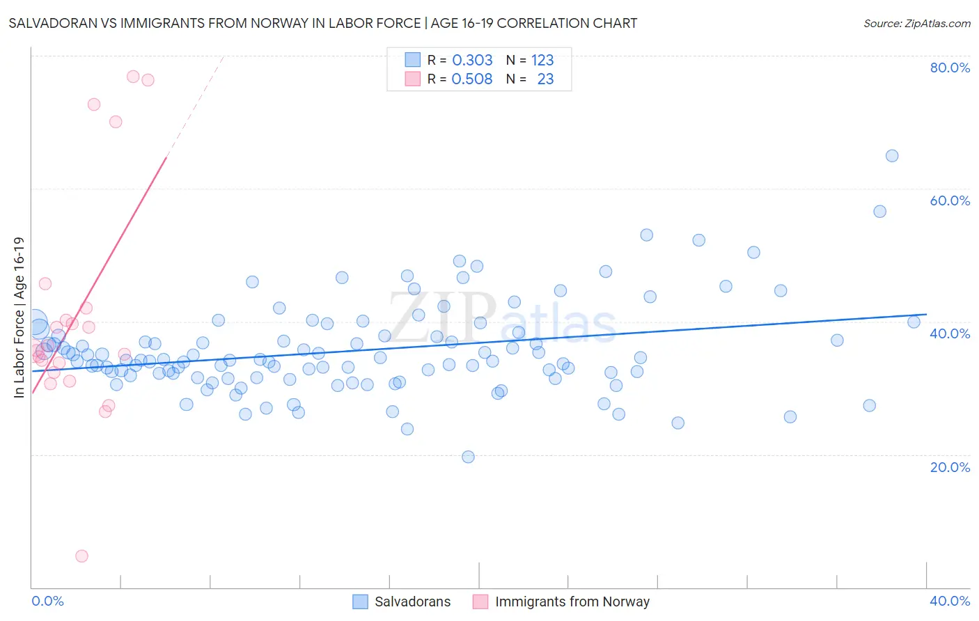 Salvadoran vs Immigrants from Norway In Labor Force | Age 16-19 Correlation Chart