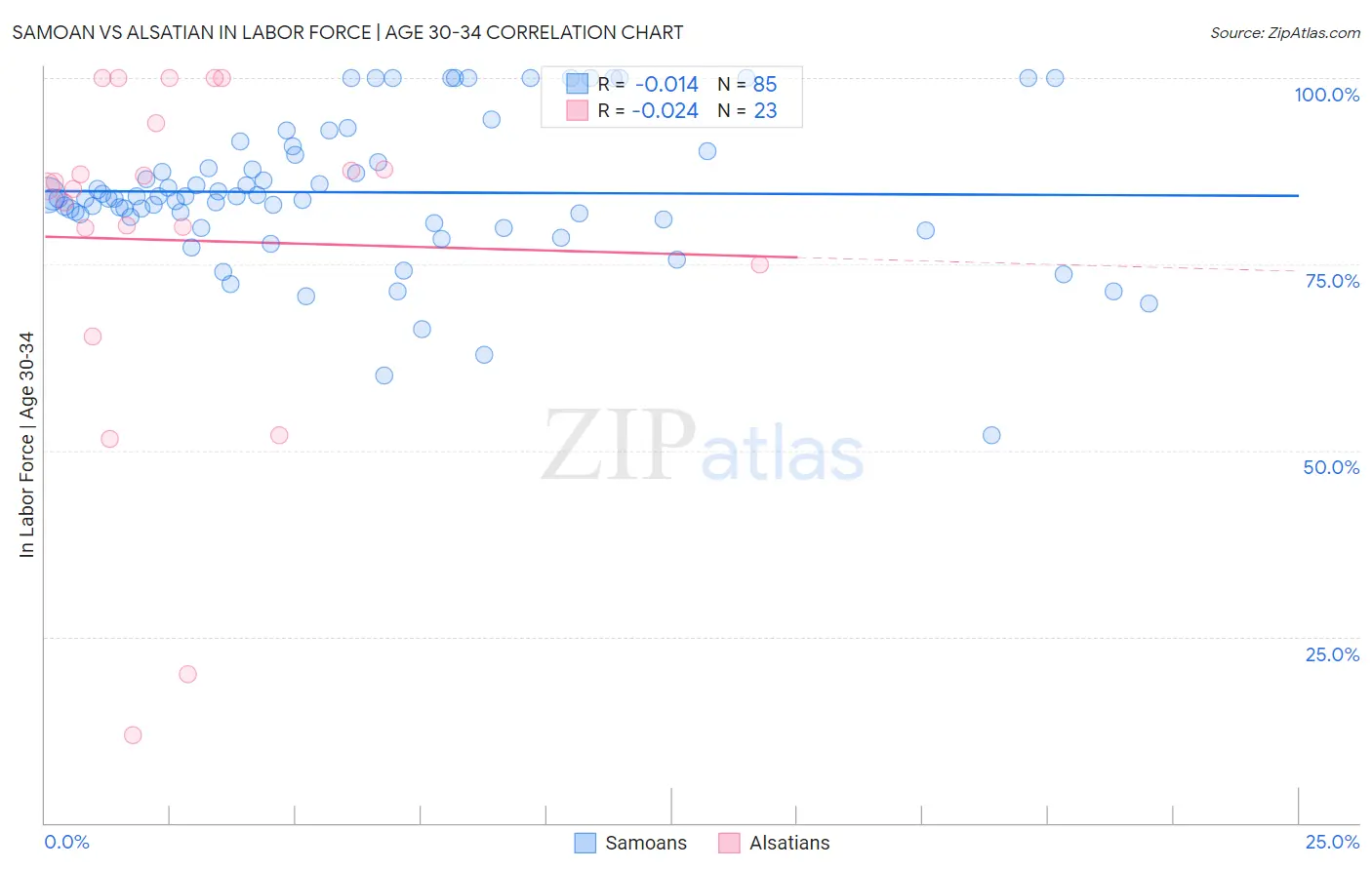 Samoan vs Alsatian In Labor Force | Age 30-34 Correlation Chart