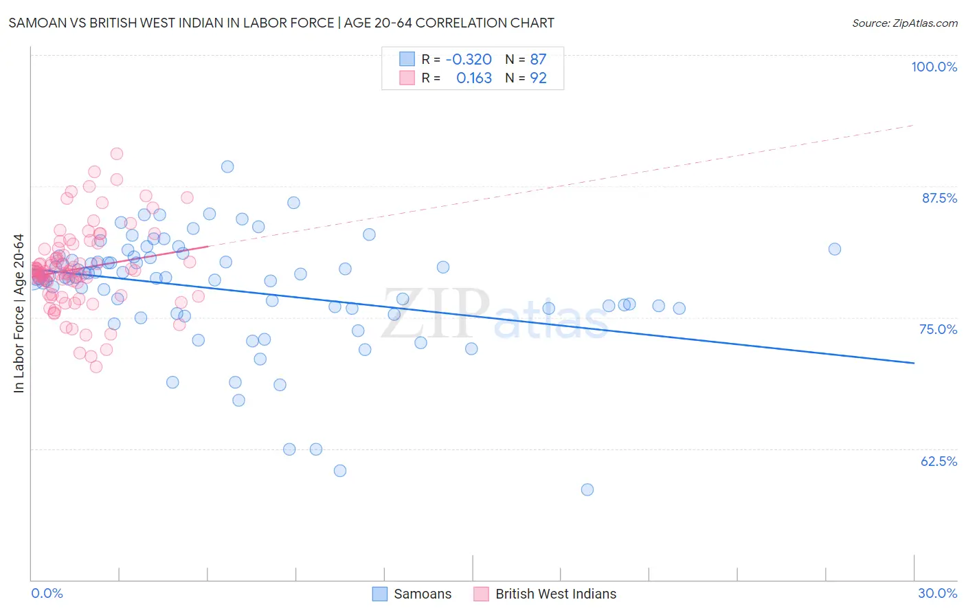 Samoan vs British West Indian In Labor Force | Age 20-64 Correlation Chart