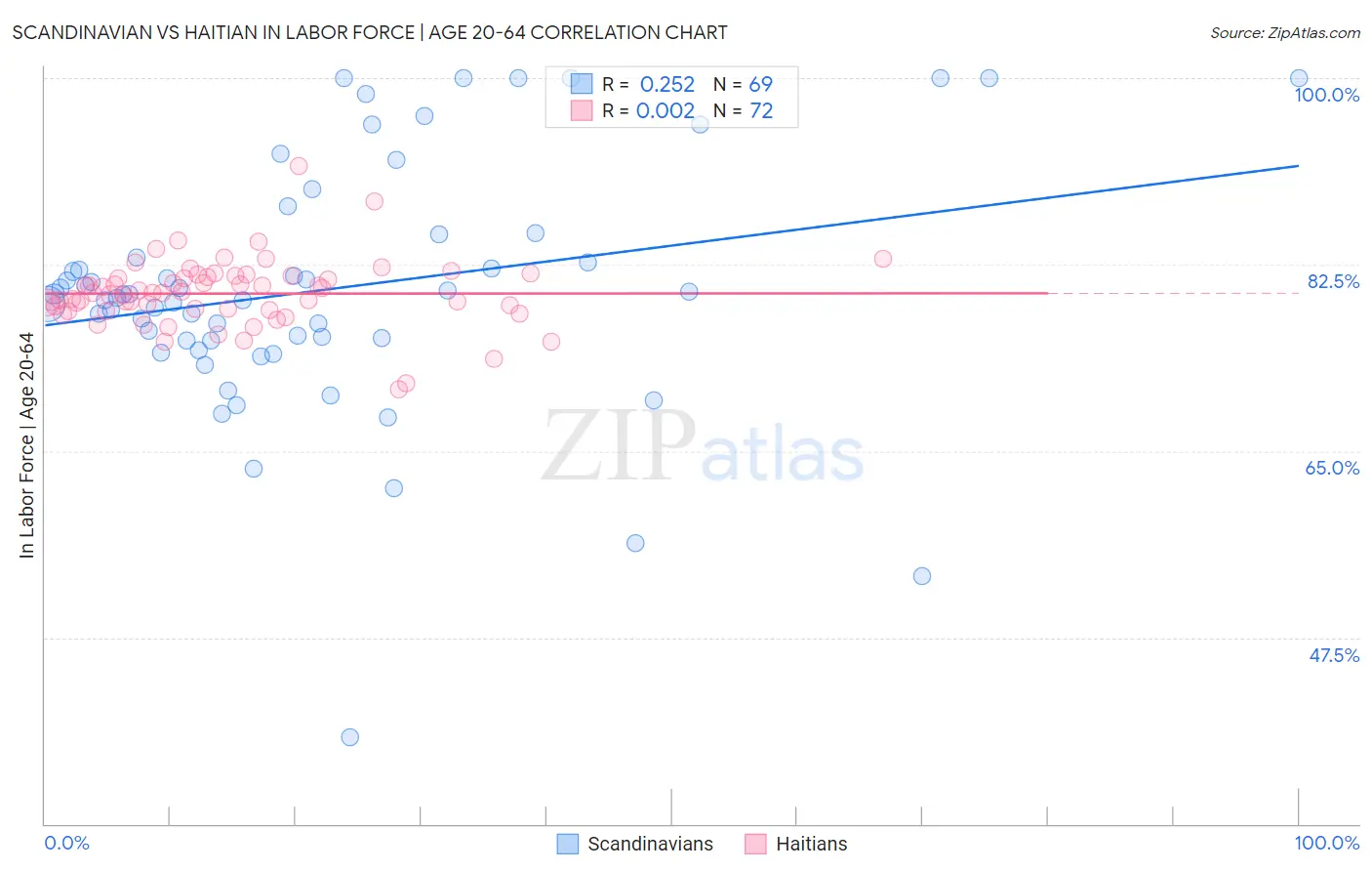 Scandinavian vs Haitian In Labor Force | Age 20-64 Correlation Chart