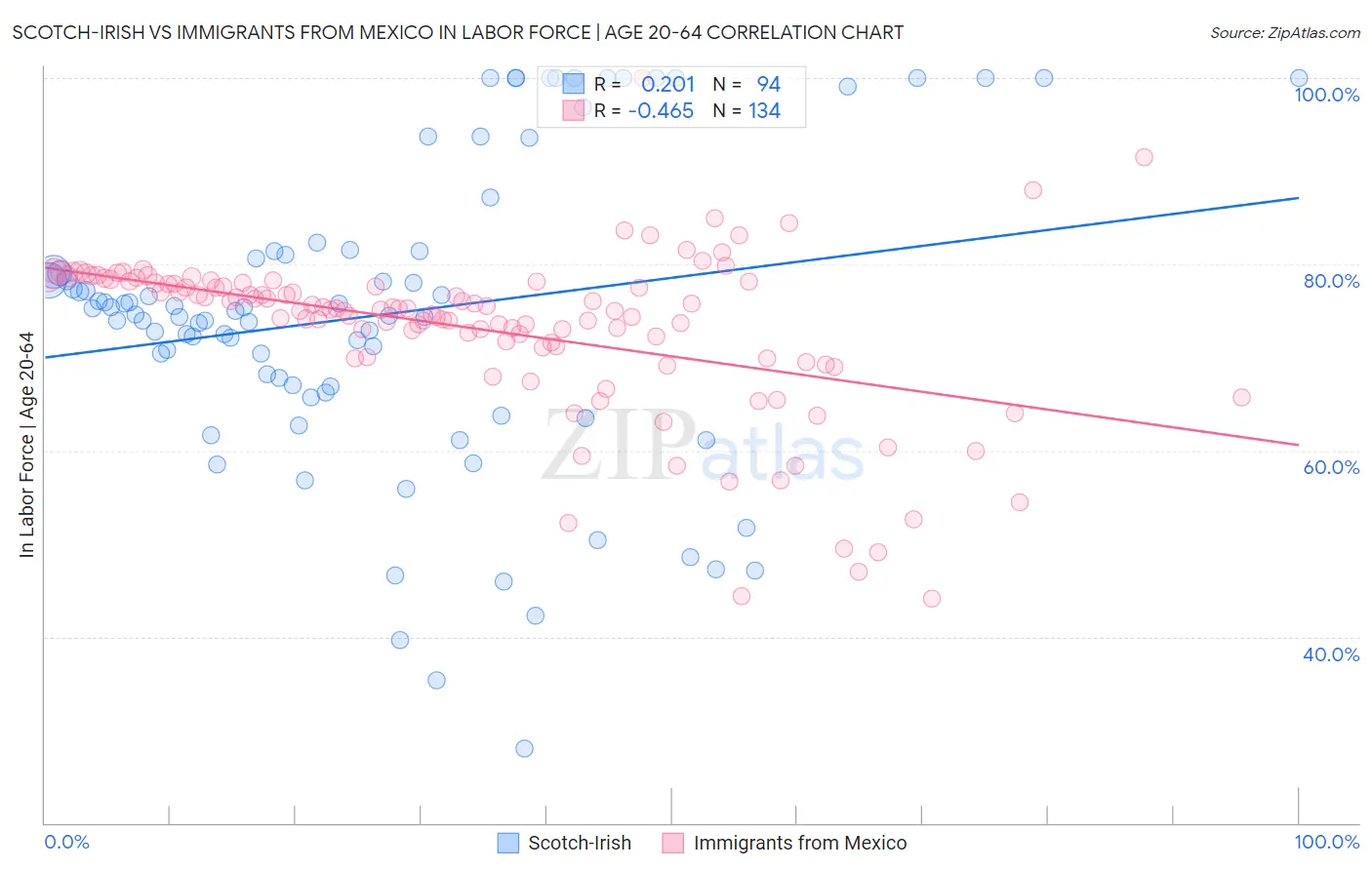 Scotch-Irish vs Immigrants from Mexico In Labor Force | Age 20-64 Correlation Chart