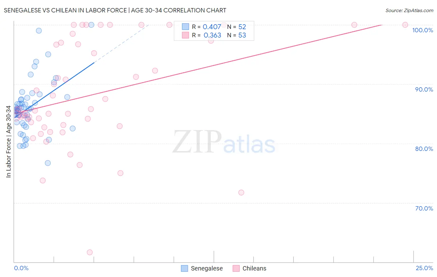 Senegalese vs Chilean In Labor Force | Age 30-34 Correlation Chart