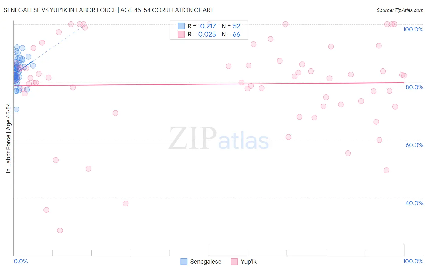Senegalese vs Yup'ik In Labor Force | Age 45-54 Correlation Chart