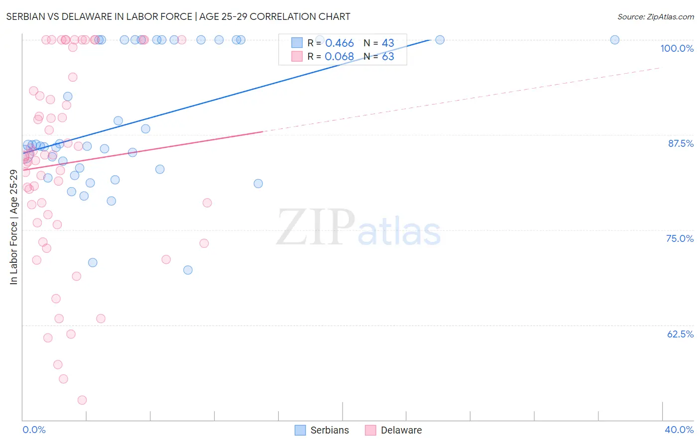Serbian vs Delaware In Labor Force | Age 25-29 Correlation Chart